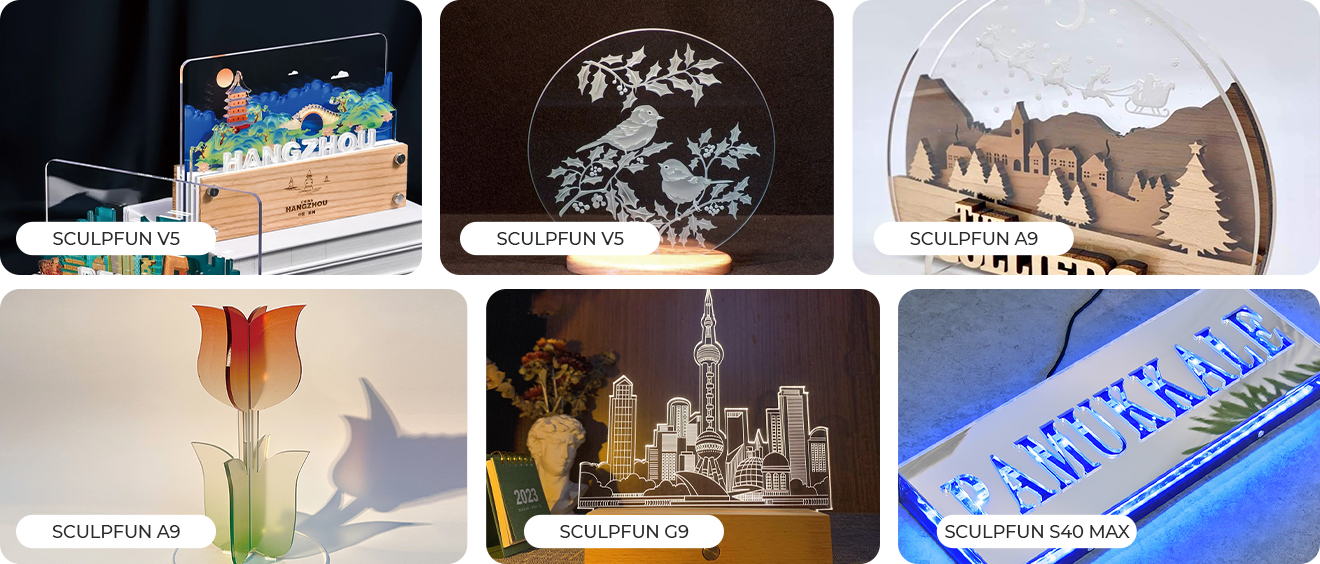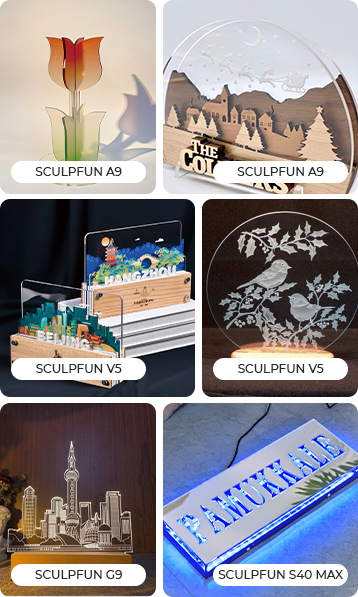 Esplora le creazioni autentiche degli utenti SCULPFUN: in legno, pelle, metallo, acrilico e altro ancora.
