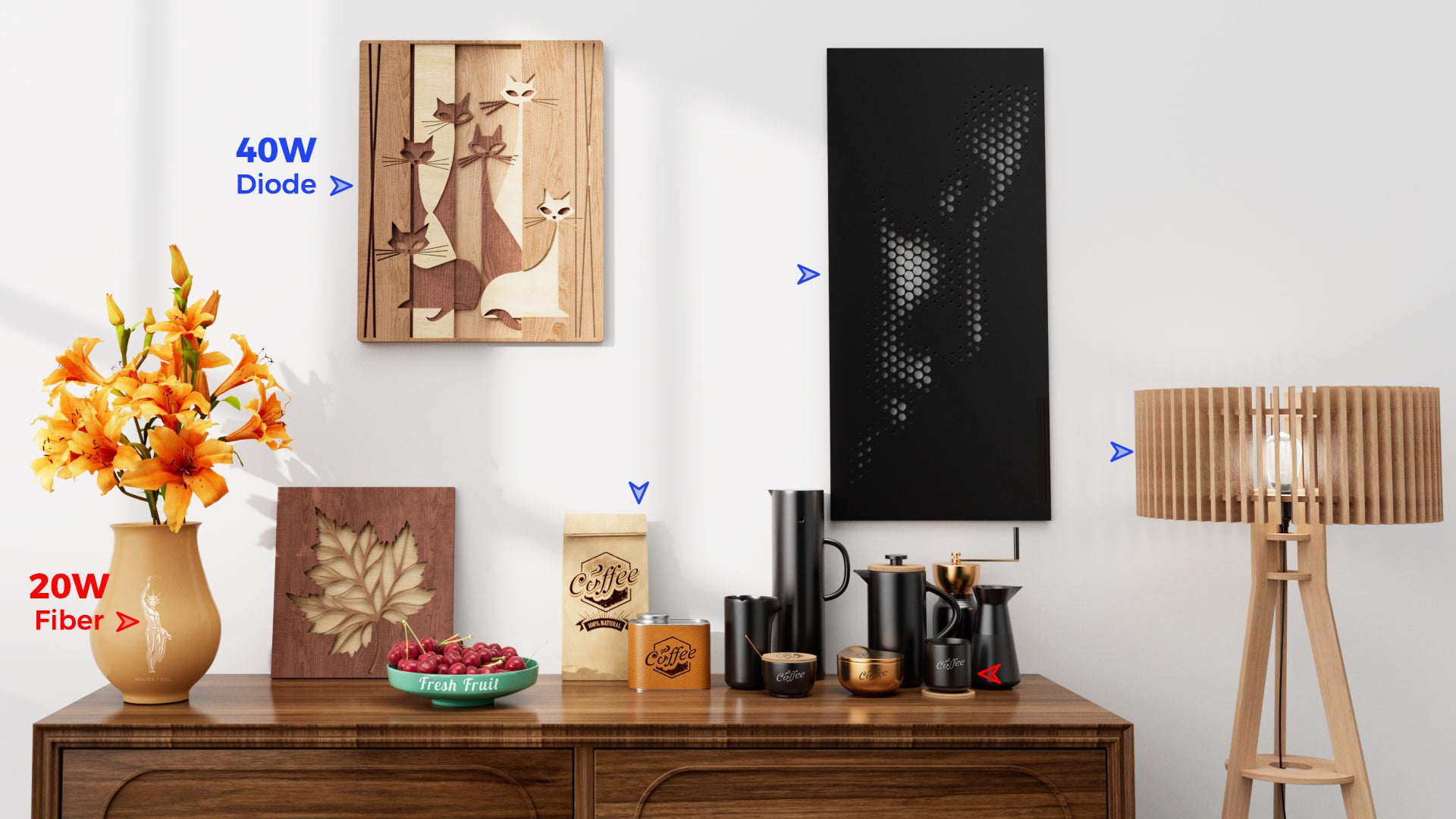 Supporta la commutazione tra laser da 40W e 20W, offrendo un controllo semplice sia per il taglio che per l’incisione.