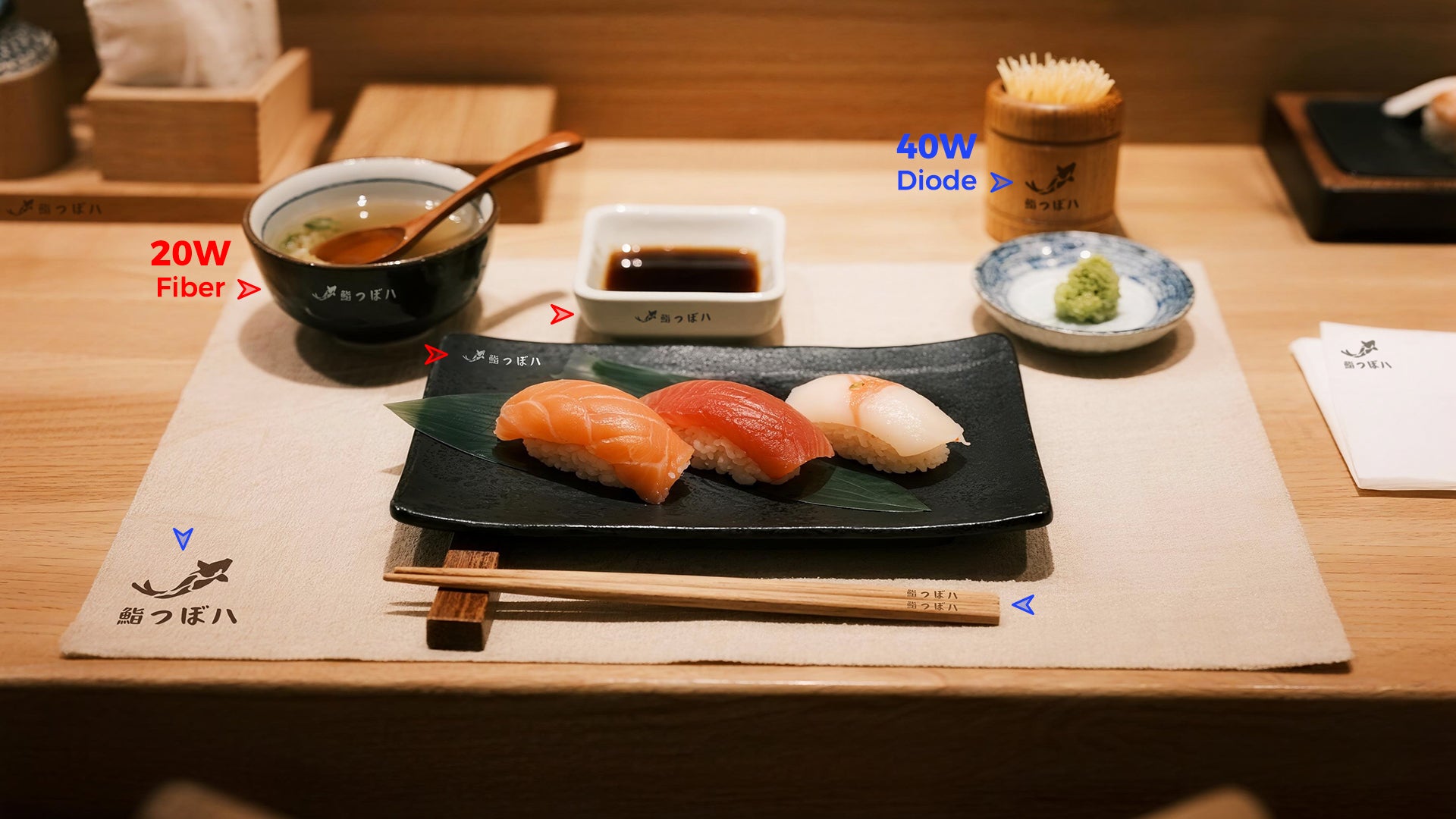 Commutazione doppi laser: 20W fibra + 40W diodo